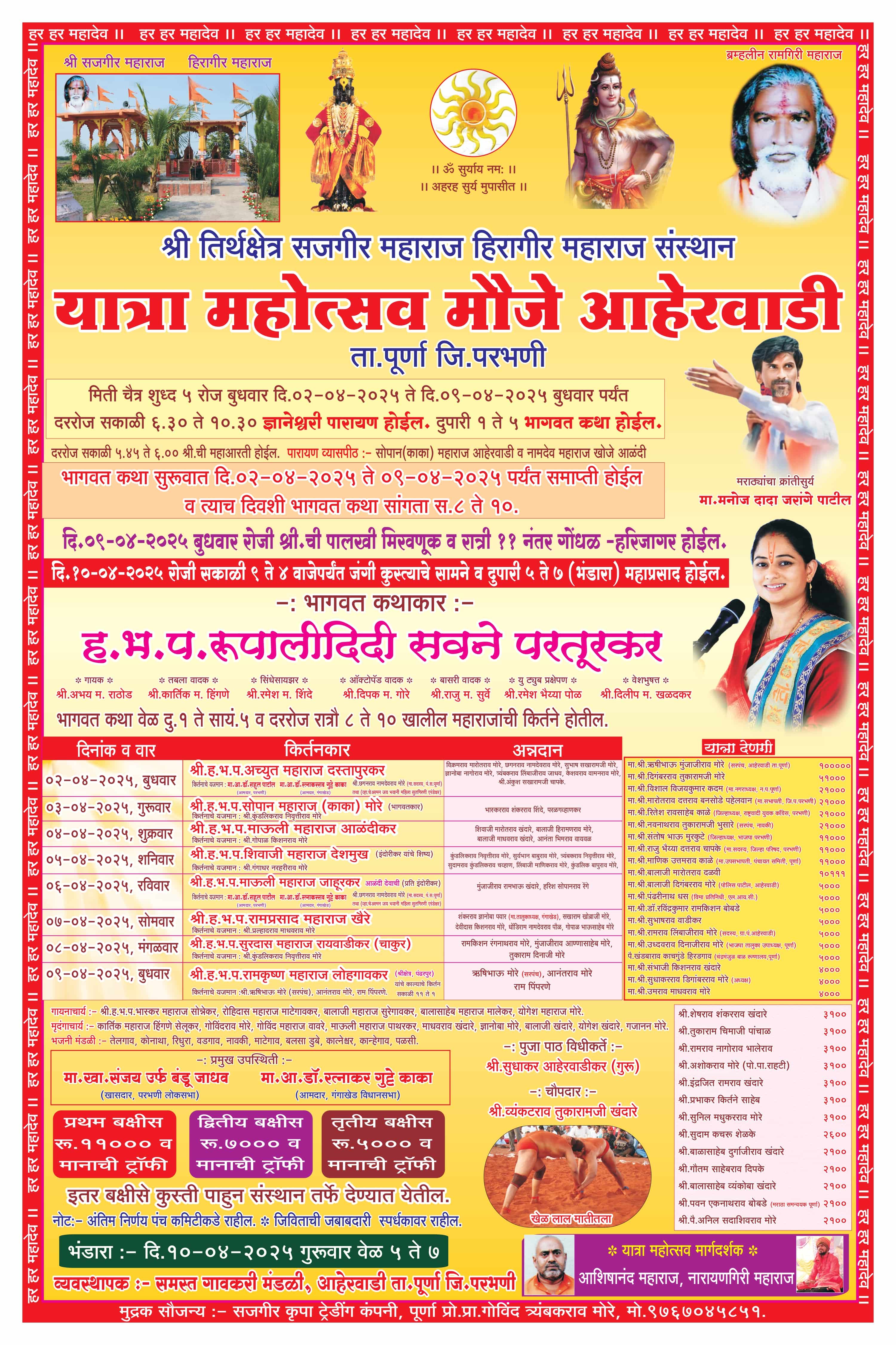 श्रावण महिन्यात आहेरवाडी ते माहुर पायी दिंडीचे आयोजन करण्यात येते.